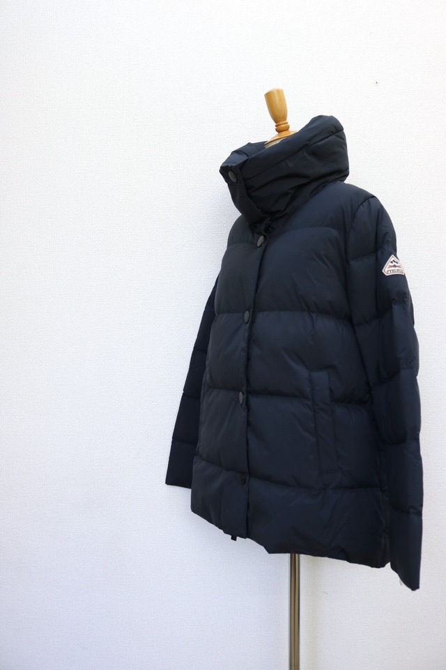 ボリュームのある襟元とフロントのドットボタンがアクセントとなったミドルレングスのダウンジャケットです。 ややドロップした肩と細すぎない袖幅で全体的にゆとりがあるリラックスしたシルエット。 フレンチダックダウンをしっかりと詰め立体的に仕上げた襟は、一番上のボタンを閉じることで襟が立ち上がりマフラー代わりにもなります。 また前後差を付けた裾をラウンドさせて全体的に柔らかい印象に仕上げています。 【 品番 】 HWU036 【 Color 】 EBONY 【 Size 】 < 36 > 着丈(前) 70㎝ 着丈(後) 76㎝ バスト 110㎝ 肩幅 37.5㎝ 袖丈 64㎝ 裾幅 130㎝ < 38 > 着丈(前) 71.5㎝ 着丈(後) 77.5㎝ バスト 115㎝ 肩幅 39㎝ 袖丈 65㎝ 裾幅 135㎝ < 40 > 着丈(前) 73㎝ 着丈(後) 79㎝ バスト 120㎝ 肩幅 40.5㎝ 袖丈 66㎝ 裾幅 140㎝ *サイズに若干の誤差が生じる場合がございます。予めご了承下さい。 【 Material 】 表地 ポリエステル95% ポリウレタン 5%(内側ポリウレタンコーティング) ダウン ダウン90% フェザー10%(750フィルパワー フレンチダックダウン) *商品に関するお問い合わせは、下記までお気軽にご連絡下さい。 F.O.B STORE 本店 Tel: 083-920-6632 Mail: [email protected] *実店舗と在庫を共有しているため、在庫の状況が随時変わっております。 その為、掲載されている商品でも在庫切れの場合もございます。予めご了承下さい。