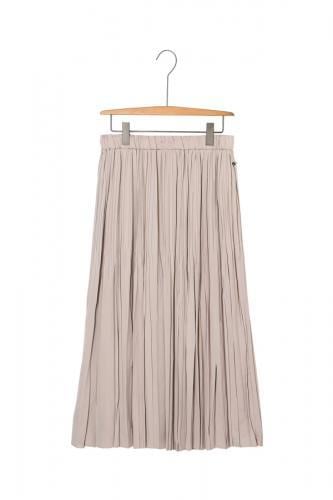 裾にかけて広がる大小段差のあるランダムなプリーツ加工でスッキリとしたシルエットに。