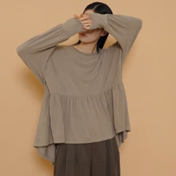たっぷりとしたギャザーがポイントで、1枚で仕上がるデザインが嬉しいです。