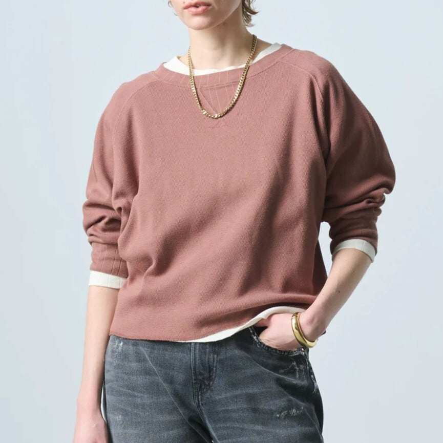 KHA:KIオリジナルのコットンハニカムサーマル素材を使用した8分袖トップスです。