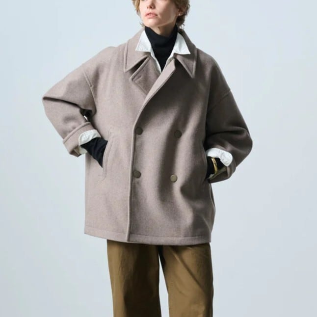 抜け感のあるコクーンシルエットが特徴的なPコートです。