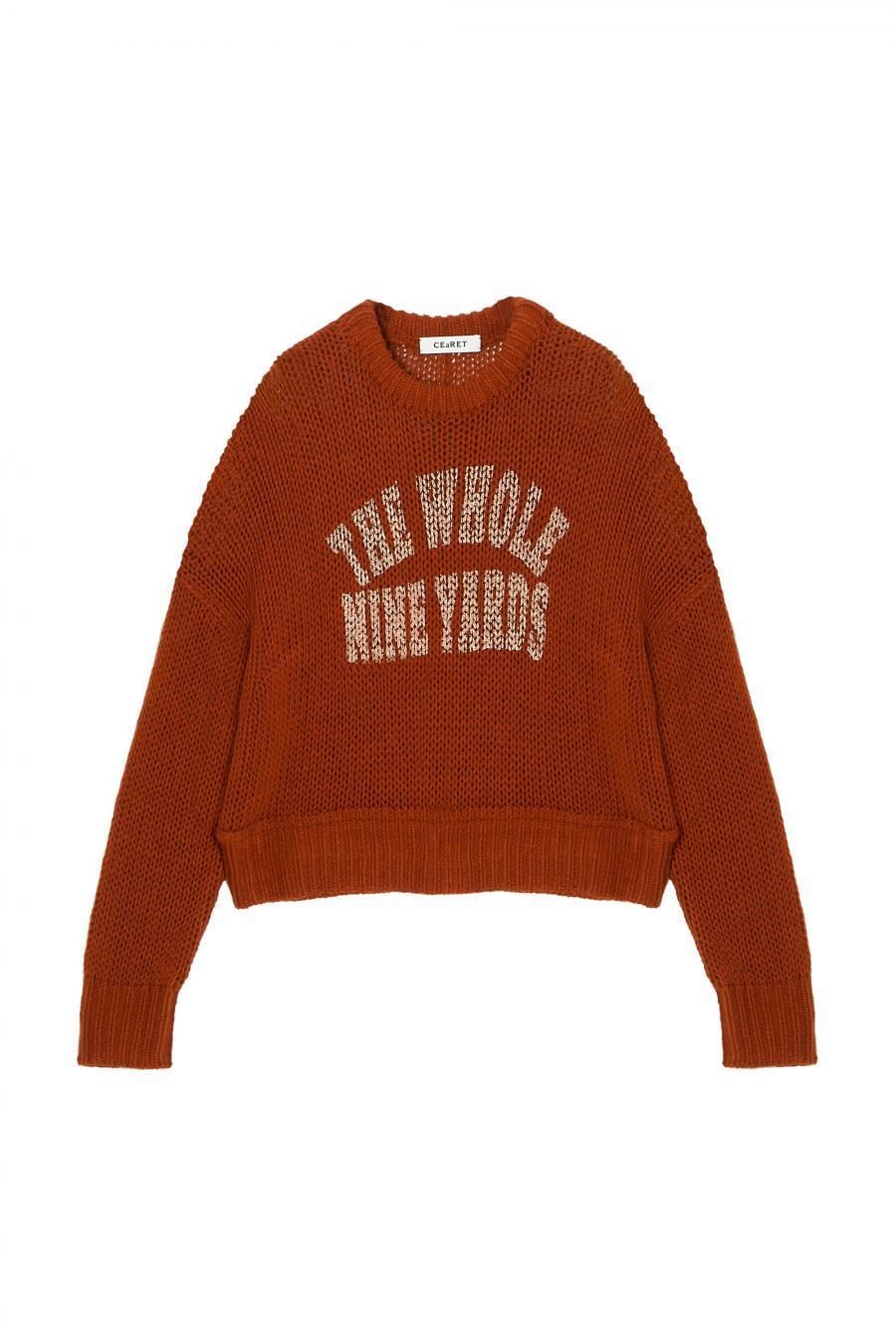 上質なウールアクリルのコードヤーンを使用したプルオーバーに、ロゴプリントを施した大人カジュアルなニットです。