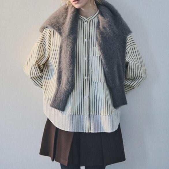 レイヤードになった袖と裾の切り替えがポイントのバックボリュームシャツです。