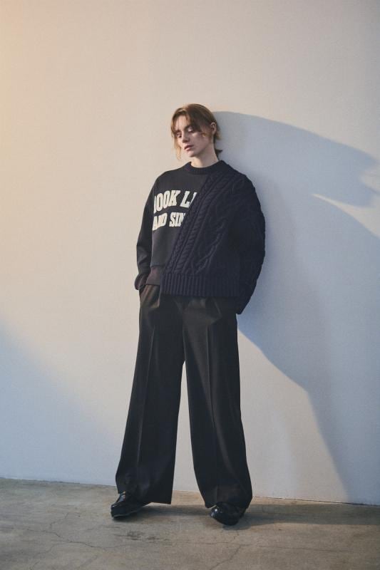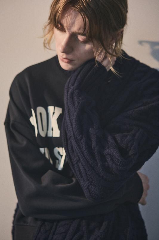 ケーブルニットと裏毛のカッティングにこだわり、どの角度からも様々な表情が楽しめる1枚です。