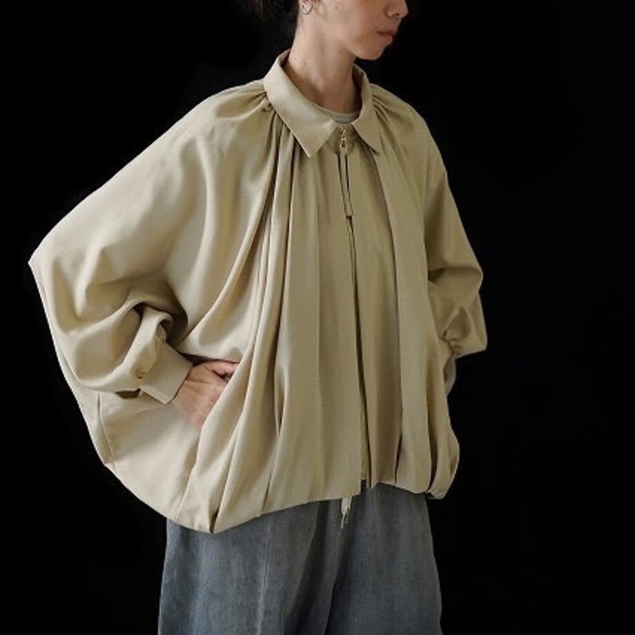 たっぷりとしたギャザーが特徴のドルマンブルゾン。