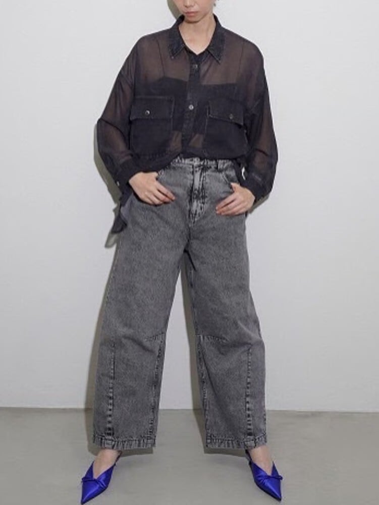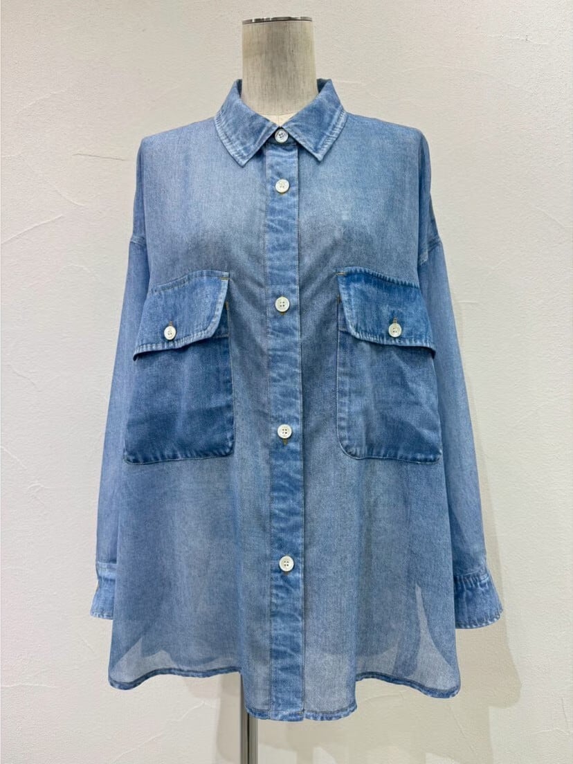 CYAN TOKYO | デニム転写シフォンシャツ
