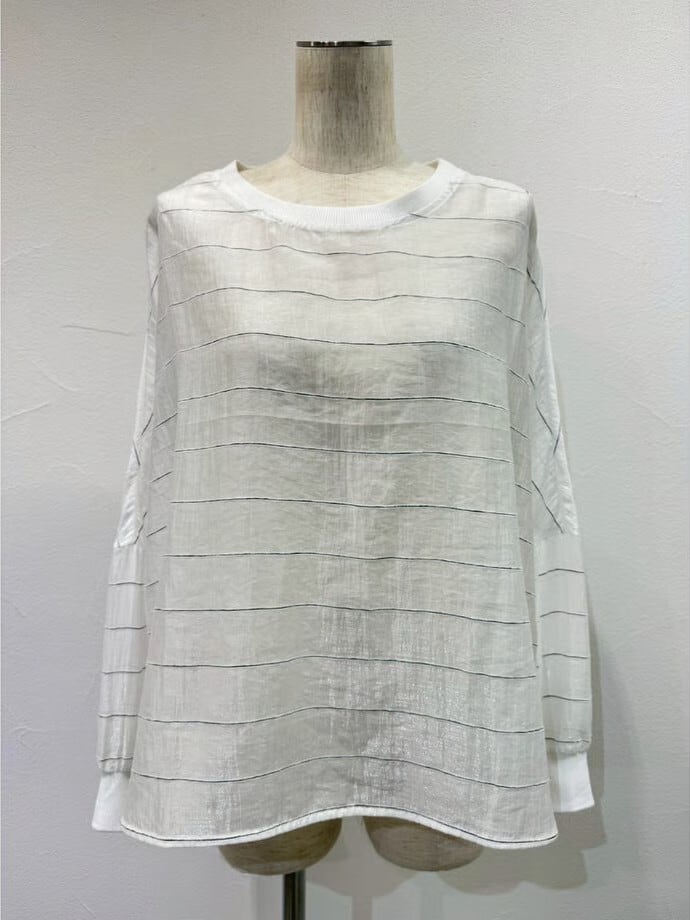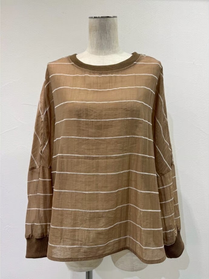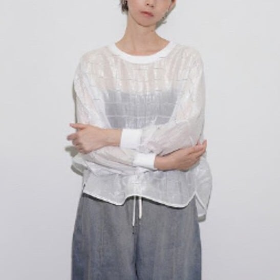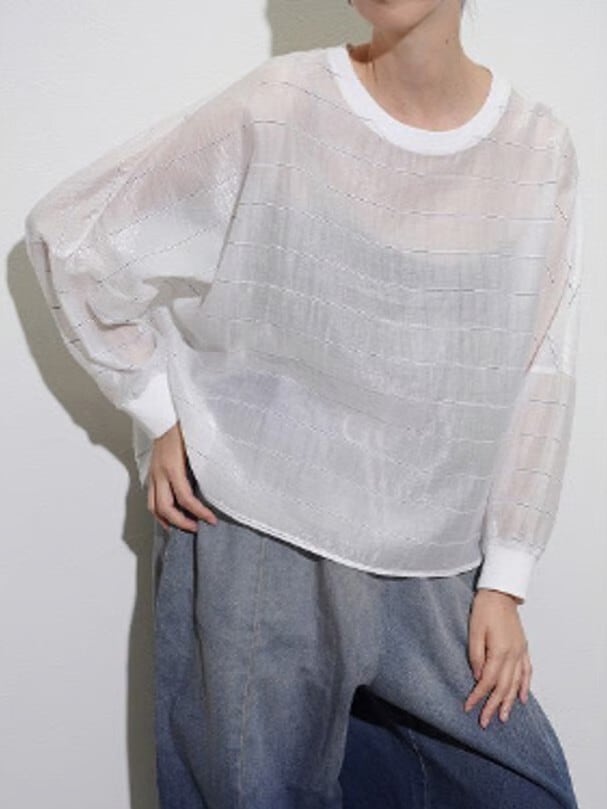グロッシーな光沢感を持つ、シアー素材のブラウス。
