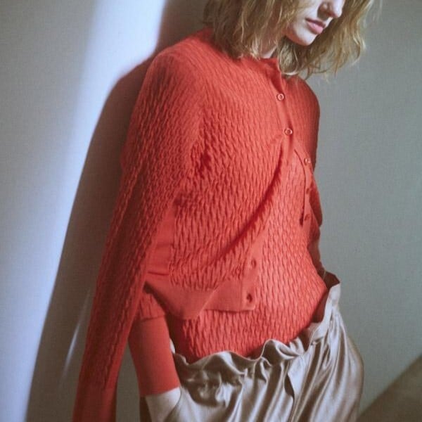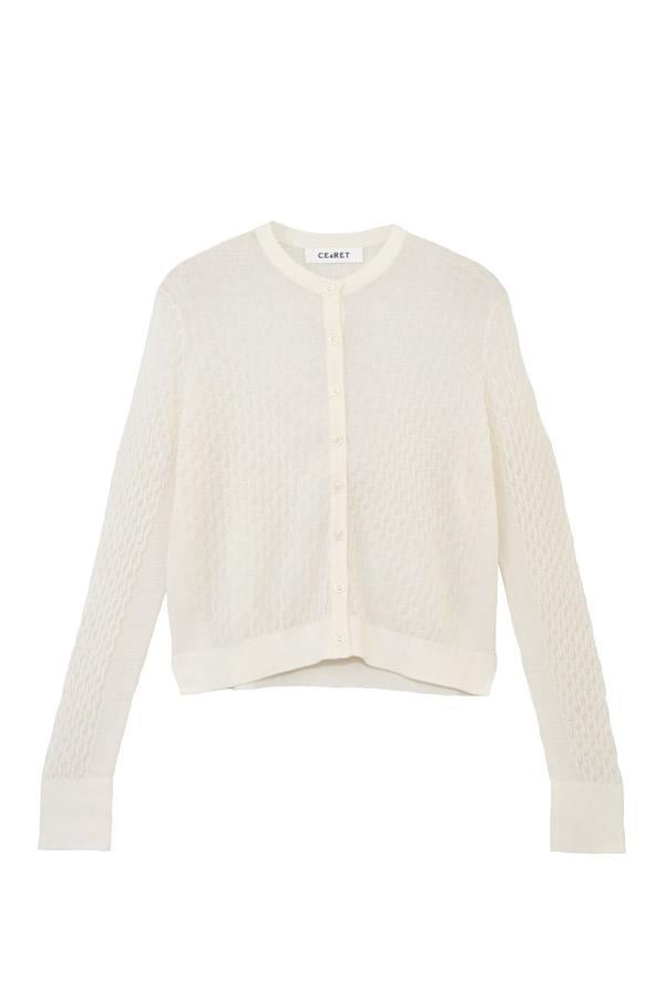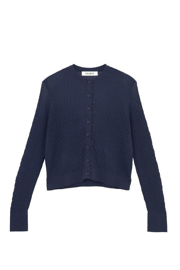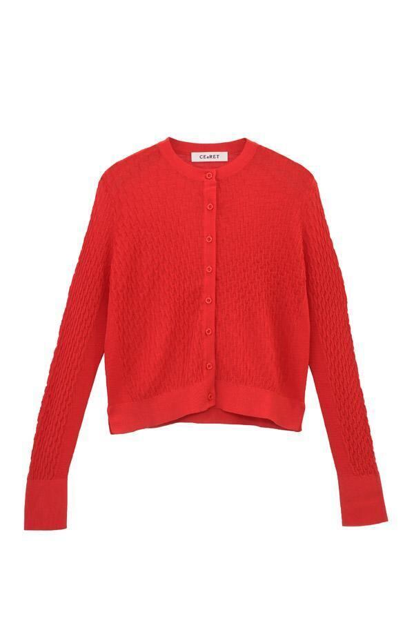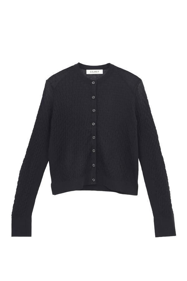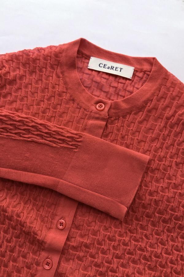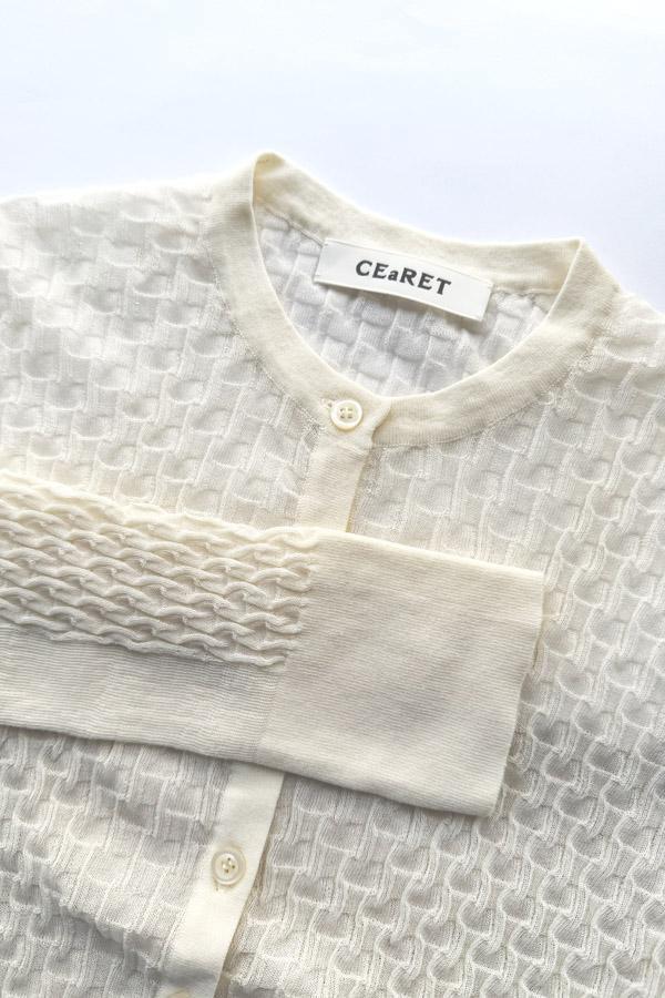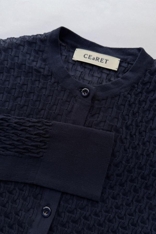16ゲージで編まれた、CEaRETオリジナルの立体感のある柄編みが特徴のニットカーディガンです。
