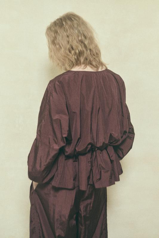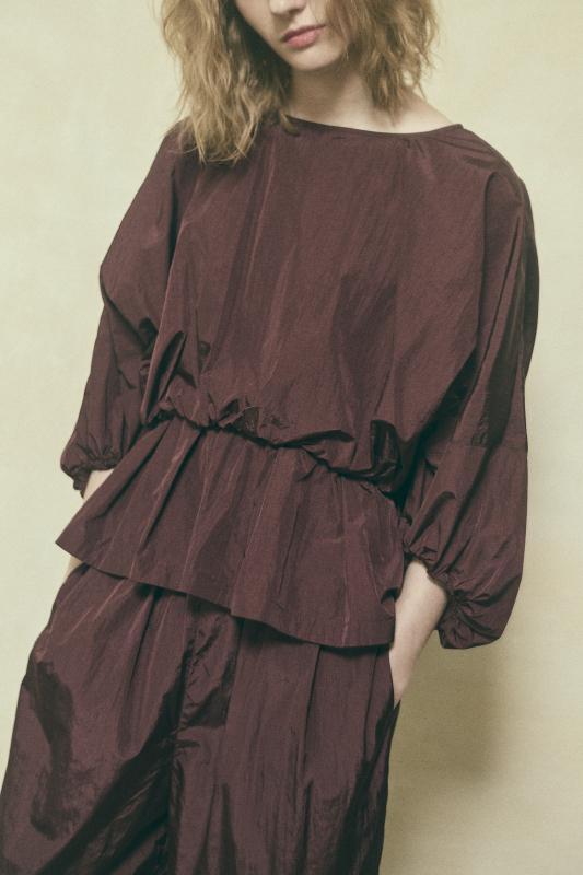 ショート丈と、たっぷりとしたギャザーのバランスが絶妙なデザインブラウスです。