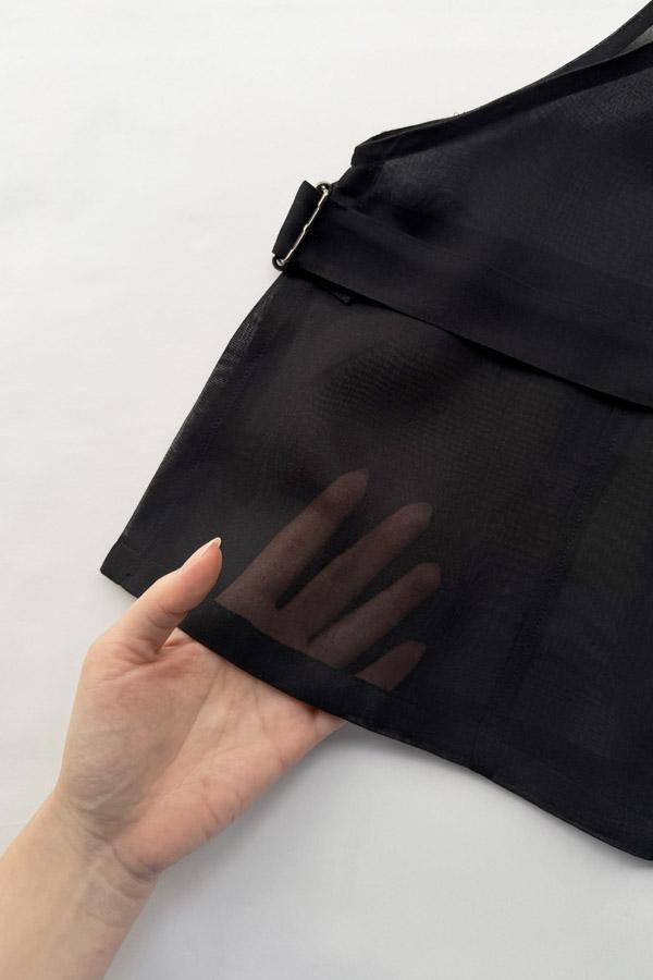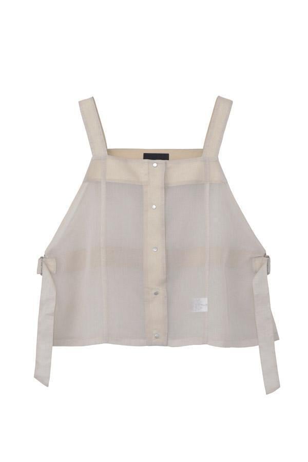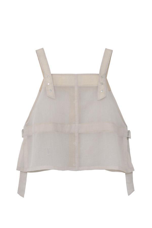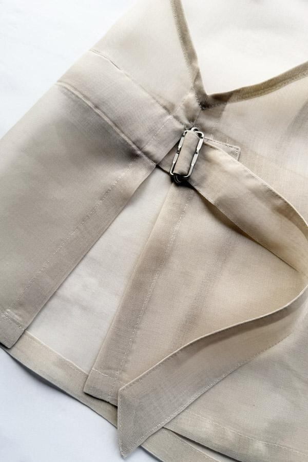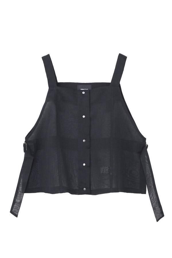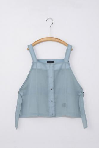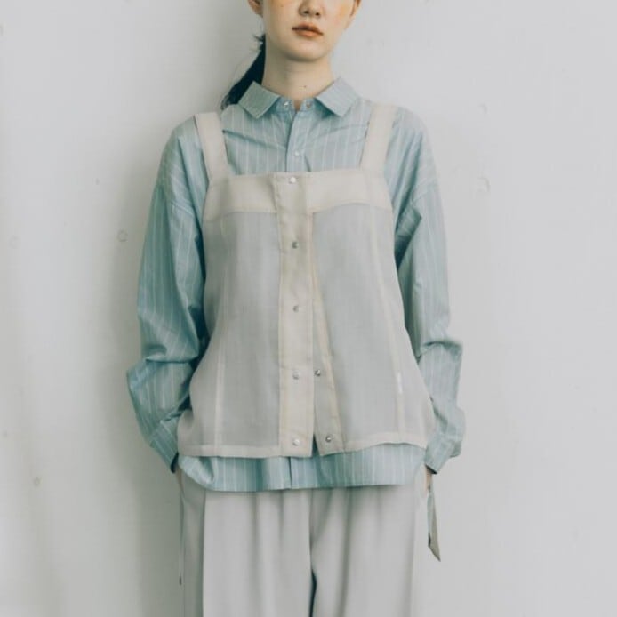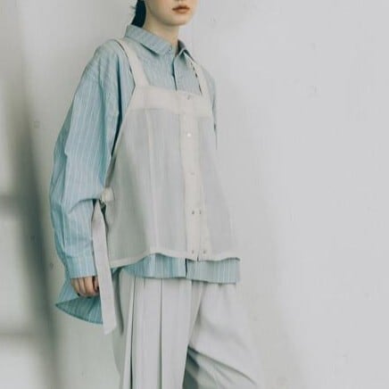 ワイドシルエットのワークベストはそのままカジュアルに着用するのはもちろん、バックウエストのベルトを引っ張り縮めることで、ビスチェのようにも着用して頂ける2wayアイテムです。