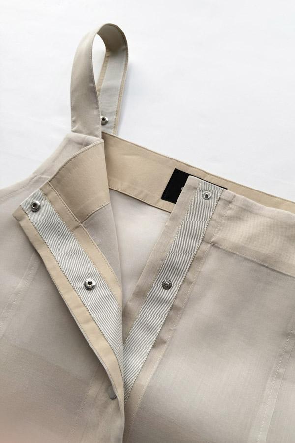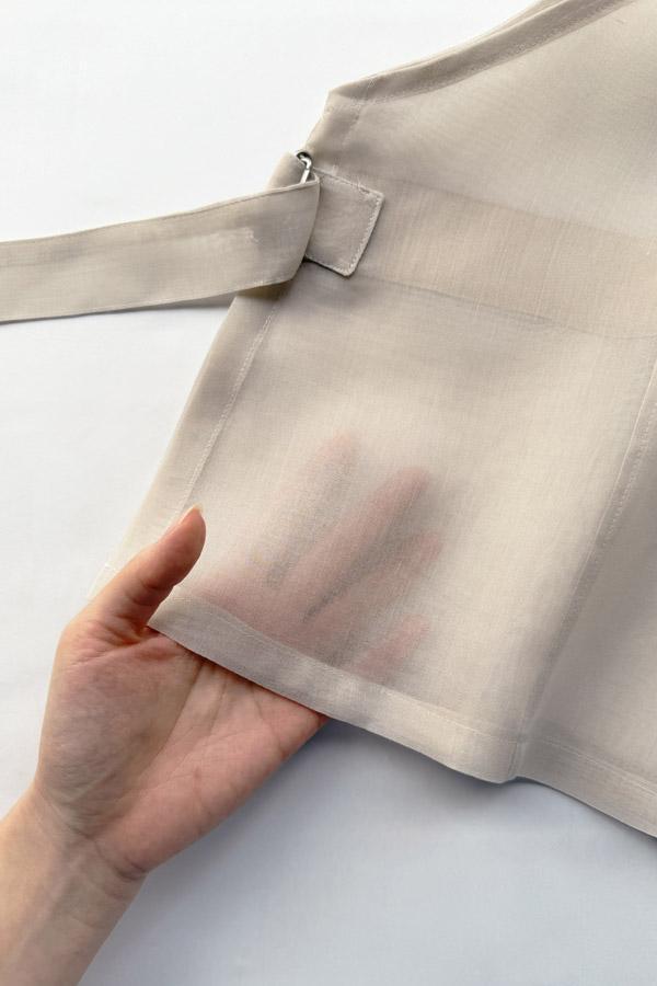 ナチュラルタッチの繊細なポリエステルボイルに、加工で麻のような風合いを出したラミー調オーガンジーを使用。
