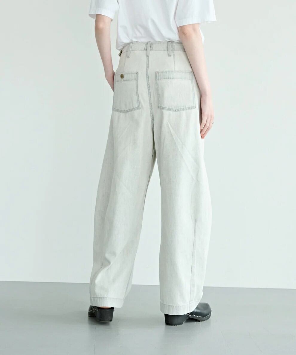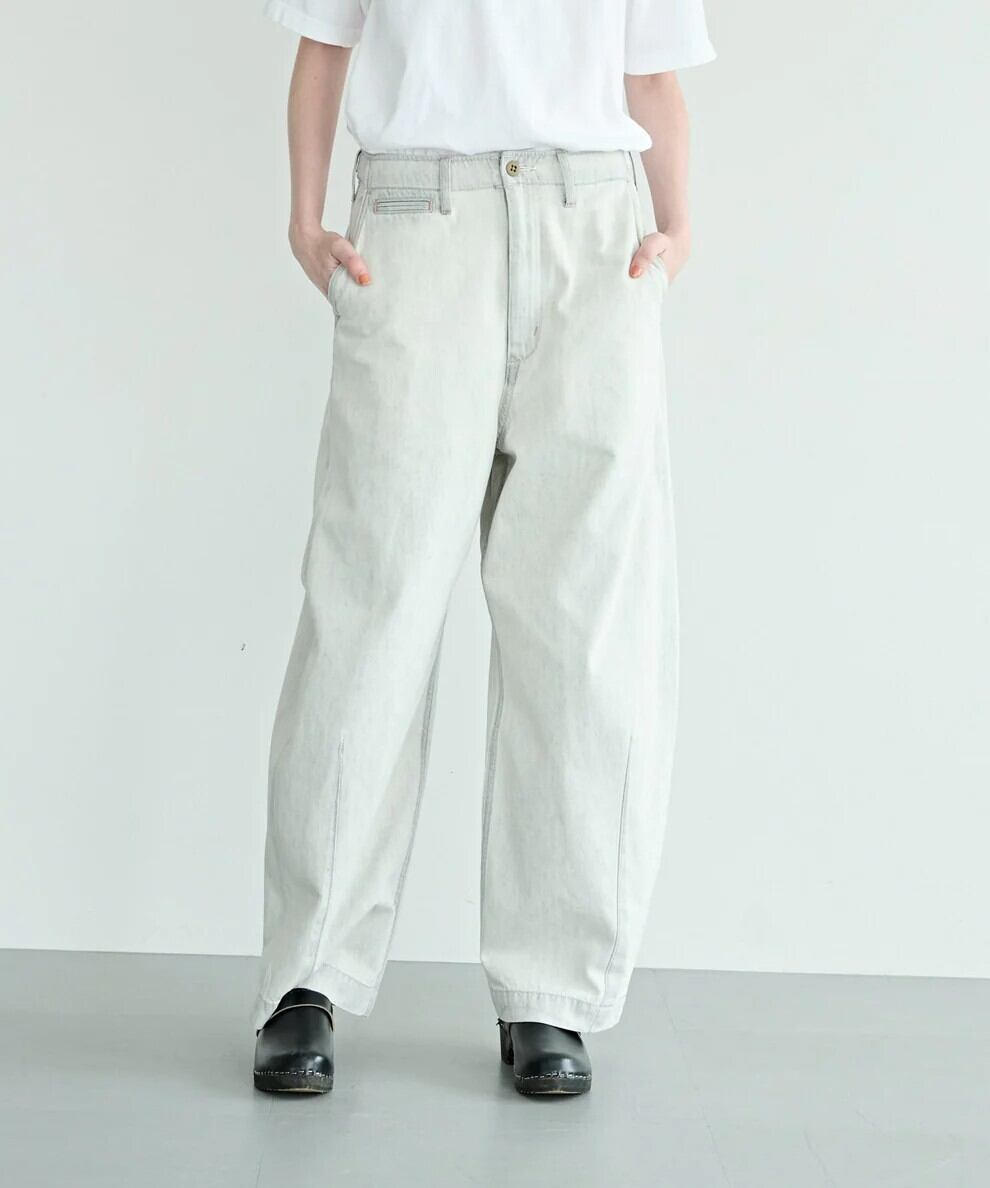 オーセンティックなミリタリーチノやベイカーパンツのディティールを組み合わせたコクーンシルエットのワイドパンツです。