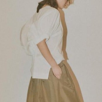 この素材を活かし、ギャザーをたっぷりと入れ造形的な膨らみのある袖に仕上げました。